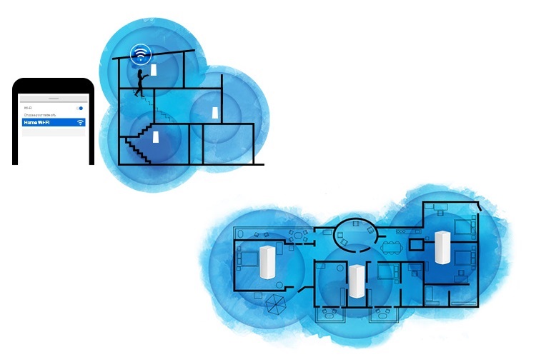 One Main NetworkUnlike the traditional Wi-Fi range extenders, Linksys Velop mesh router system does not make separate credential for each node. No matter the number of routers in your system, you will have only a single Wi-Fi name and password that lets you roam in your home without worrying about Wi-Fi dead spots or switching from one to another while losing the signal. | |