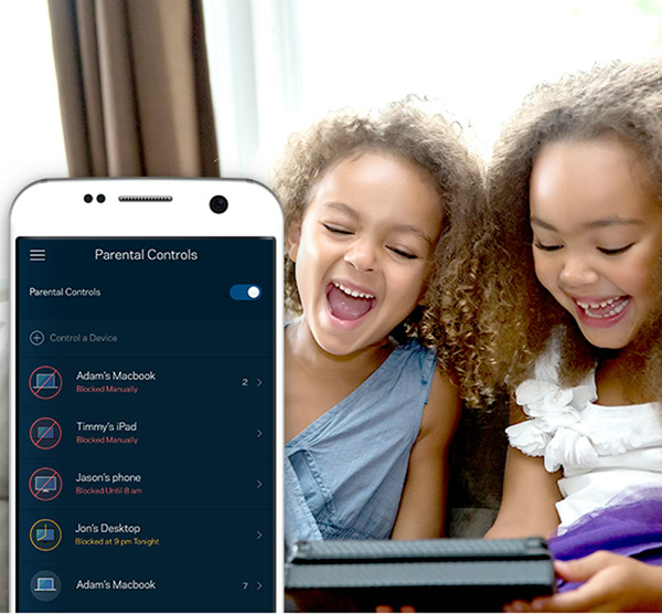 Parental ControlWith the Parental Control feature on Linksys Velop mesh router system, you can restrict access to inappropriate or distracting content, control usage and block specific devices from accessing the internet. | |
