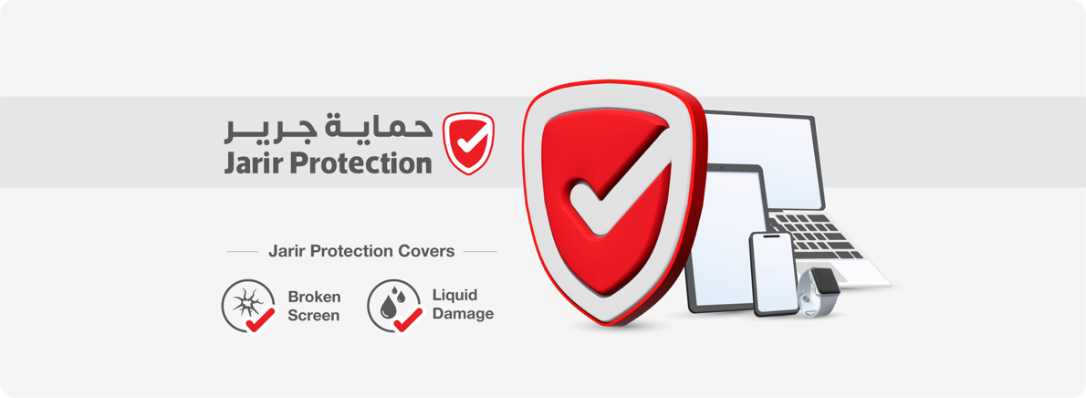 Jarir Protection is a repair or replacement service, protecting your device against any accidental damage not covered by the manufacturer’s warranty, like broken screen and liquid damage, where we will repair or replace your device at a fixed service fee.