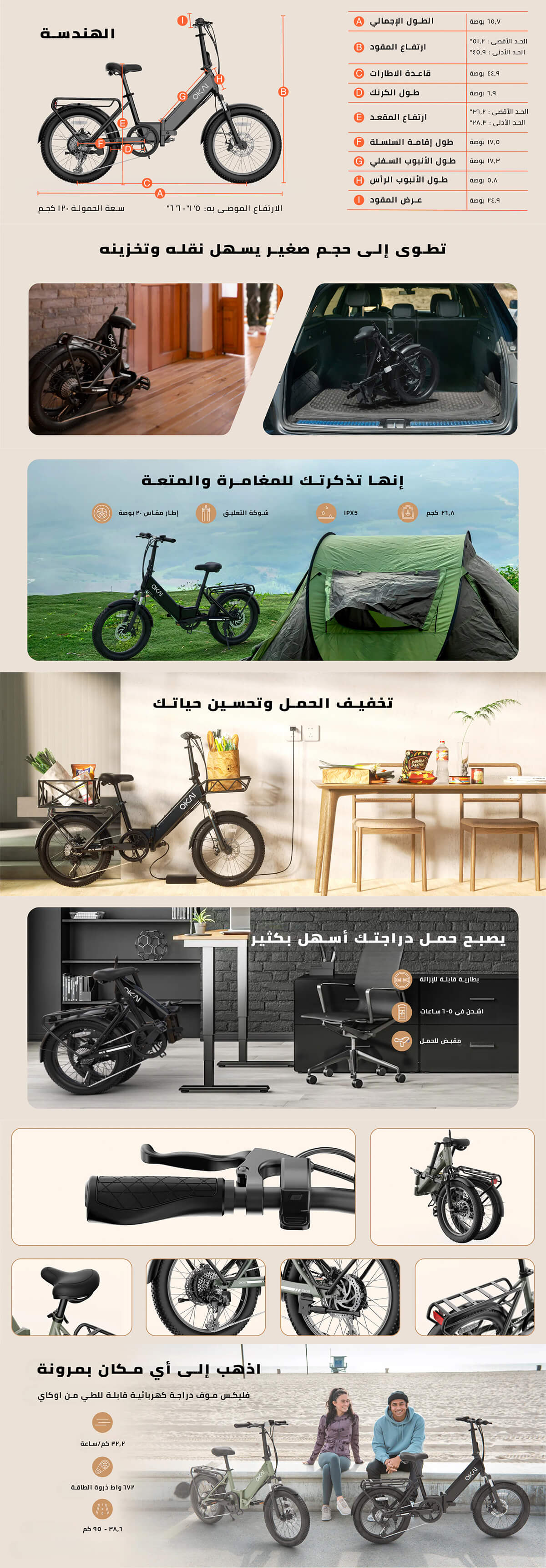 94.9 كم (دواسة كهربائية) مدى تقريبي 40.8 كم (مساعدة بالدواسة) ساعة/كم 32 سرعة قصوى بوصة 20 عجلة مقاس العقيق الا سود