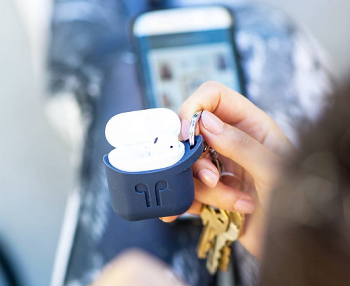 كفر سماعات ابل بودبوكيت مصمم بدقة من السيليكون عالي الجودة لتوفير ملائمة آمنة لغطاء الشحن. ويسمح المنفذ السفلي بشحن الغطاء في أي وقت، مع امكانية وضعها بشكل عامودي.