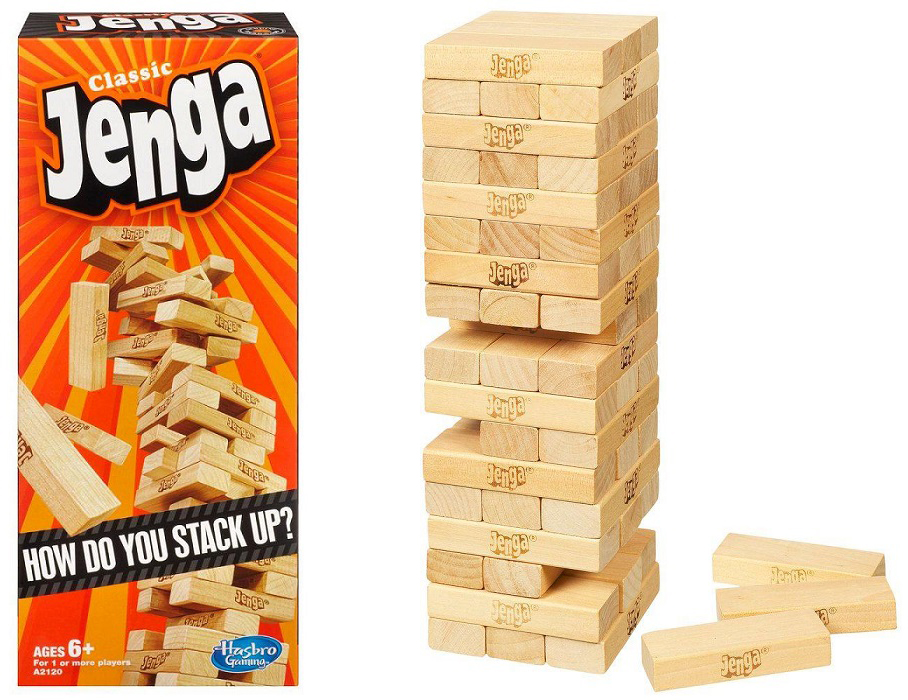 How to Play Jenga Stacking Game?Jenga is an easy game that you can play anytime, anywhere and any way you like. The rules are simple enough for the whole family to play. The most popular Jenga game is to find out the champion by stacking the blocks. Just stack the blocks into a tower without letting it fall and the last player to complete their turn before someone makes it topple is crowned as the winner. This Hasbro Jenga game comes with 54 precision crafted hard wood blocks that are sturdy and durable. | ![]() |