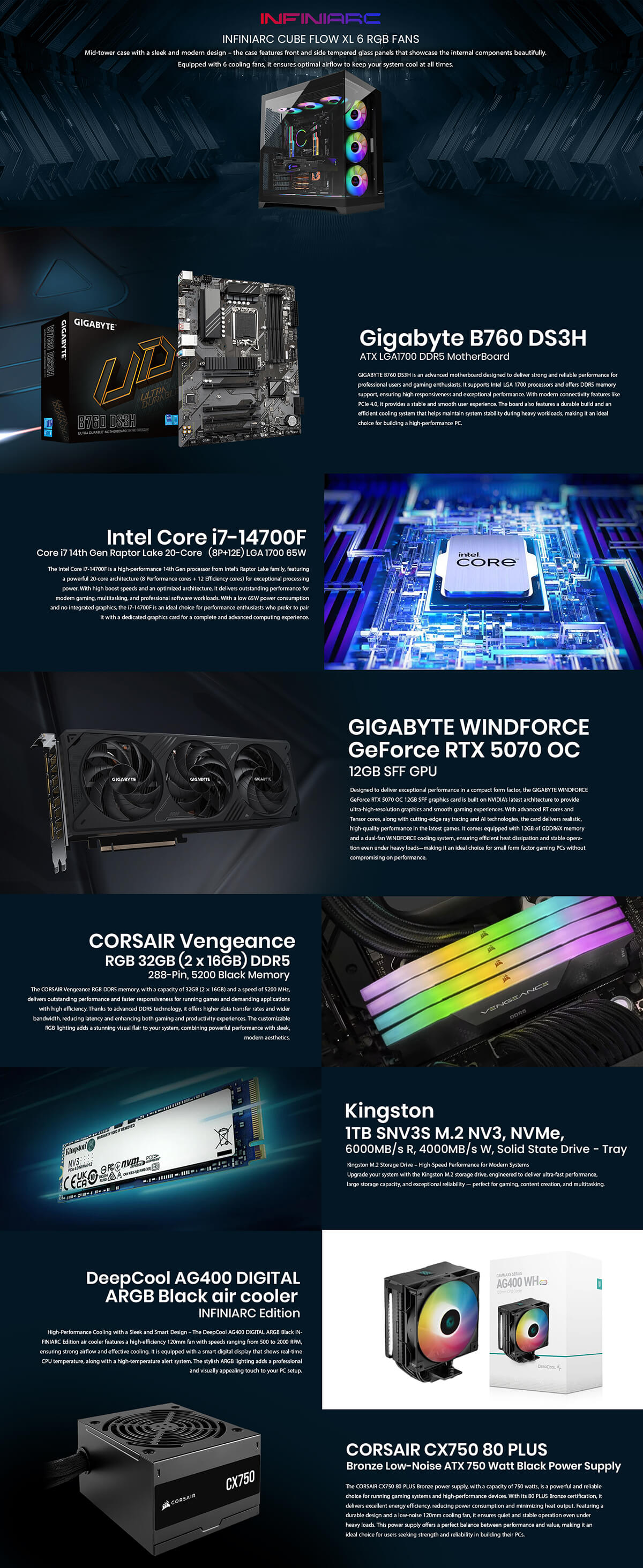 Intel Core i7-14700F (14th Gen) 32 GB RAM NVIDIA GeForce RTX 5070 (12 GB) 1 TB SSD